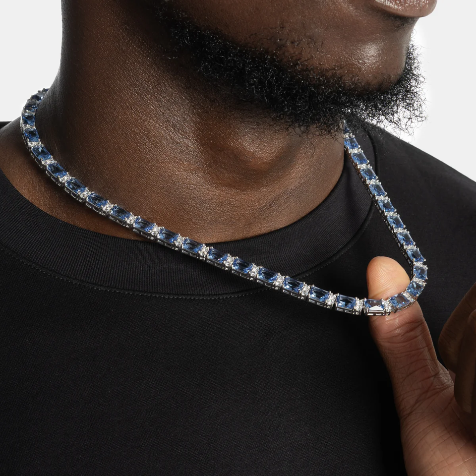 Cadena de tenis de Hip Hop de moda joyería de moda 5mm azul \ blanco Moissanite diamante Cadena de tenis para hombres y mujeres