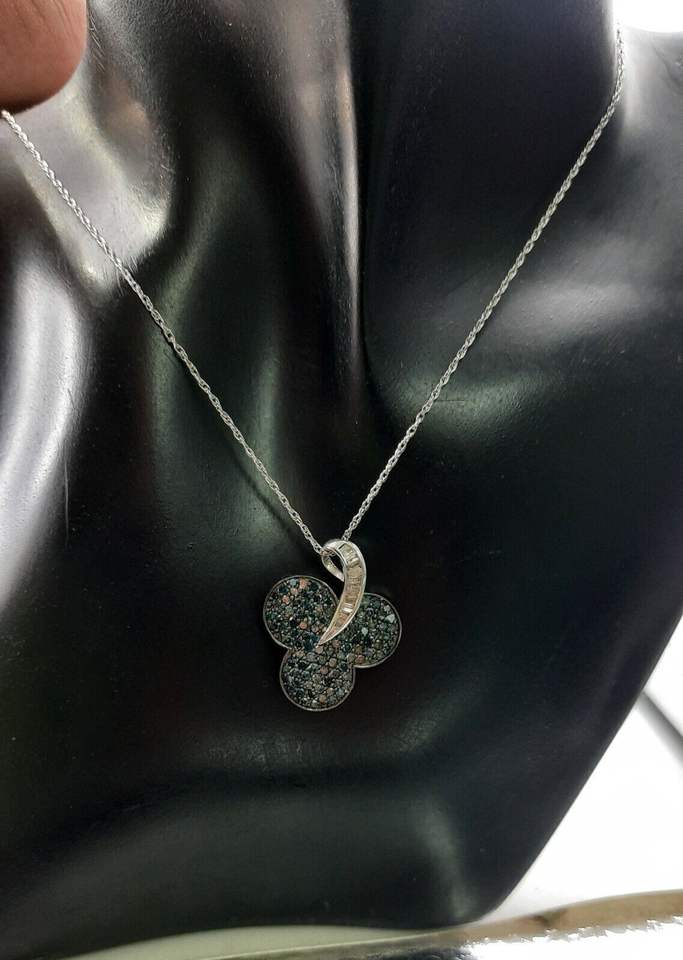 JEWELSPAARK - Collar con Colgante de Diamantes Blancos y Azules de 0.92 Ct, Accesorio de Moda para Mujer, Joyería de Plata de Ley, Regalo de Boda