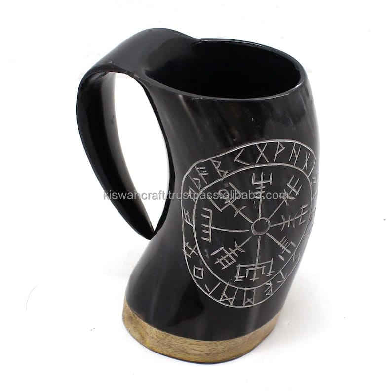 Taza de Cuerno Natural de 4 Pulgadas, de Lujo y a la Moda, Grabada a Mano, Ecológica, de Primera Calidad, Apta para Lavavajillas y Microondas