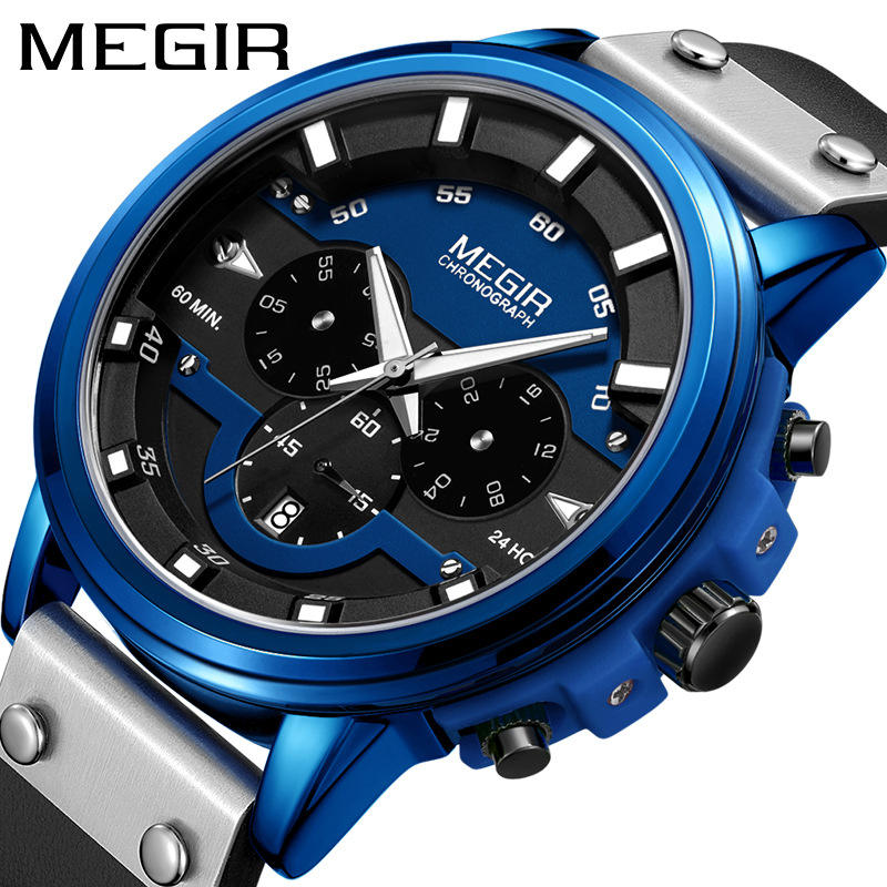 Reloj de moda para hombre, elegante, deportivo, multifuncional, reloj de pulsera de cuarzo, calendario de cuero genuino, reloj para hombre