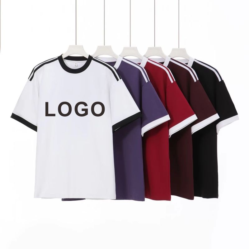 Marca de moda para hombre con LOGOTIPO personalizado Heavyweight 240g 100% algodón Color Block cuello redondo Camiseta de manga corta y gran tamaño para hombres