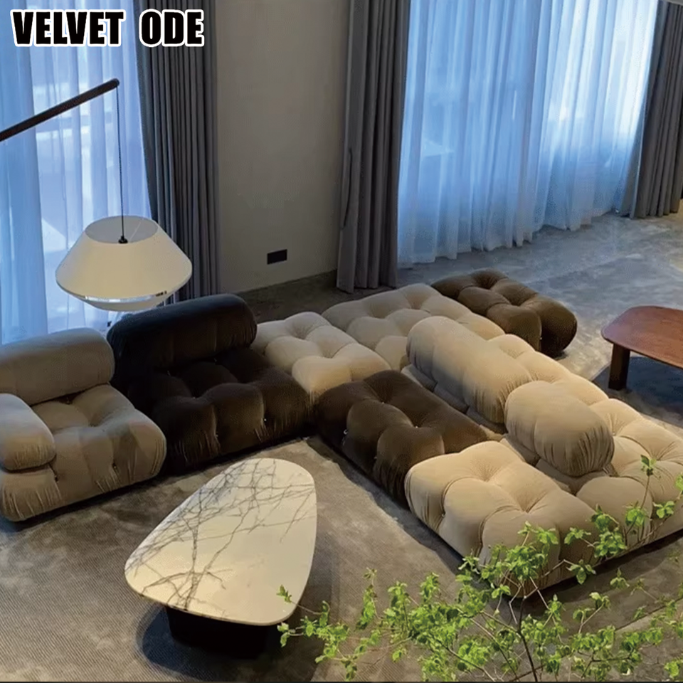 Conjunto de Sofás Chesterfield Modulares de Tela, Color Personalizado, Combinación Libre, Relleno de Esponja de Alta Densidad, Tapizado Ecológico