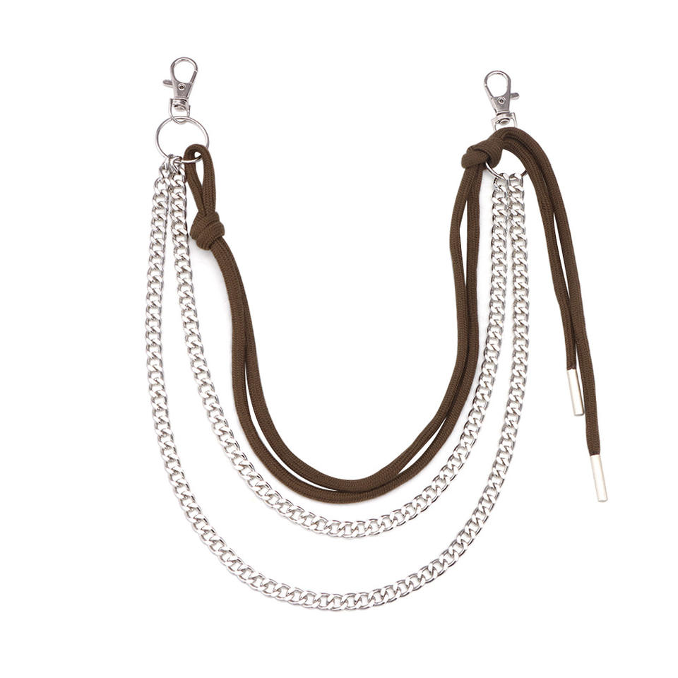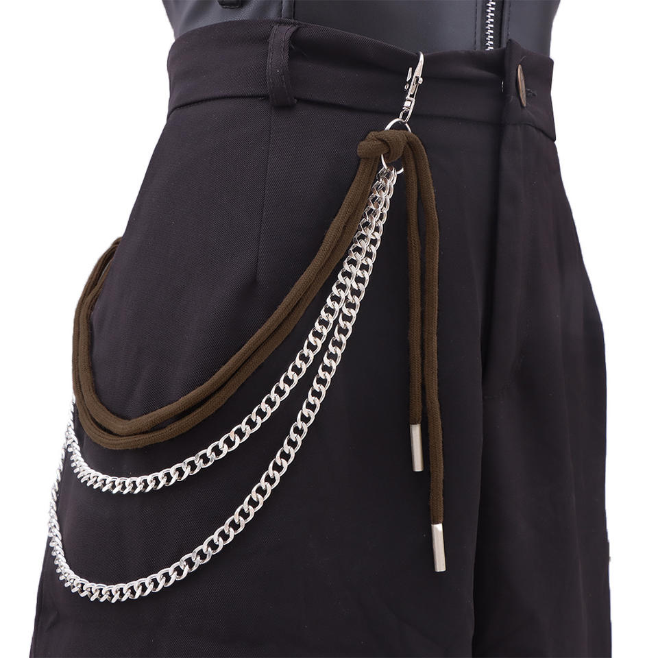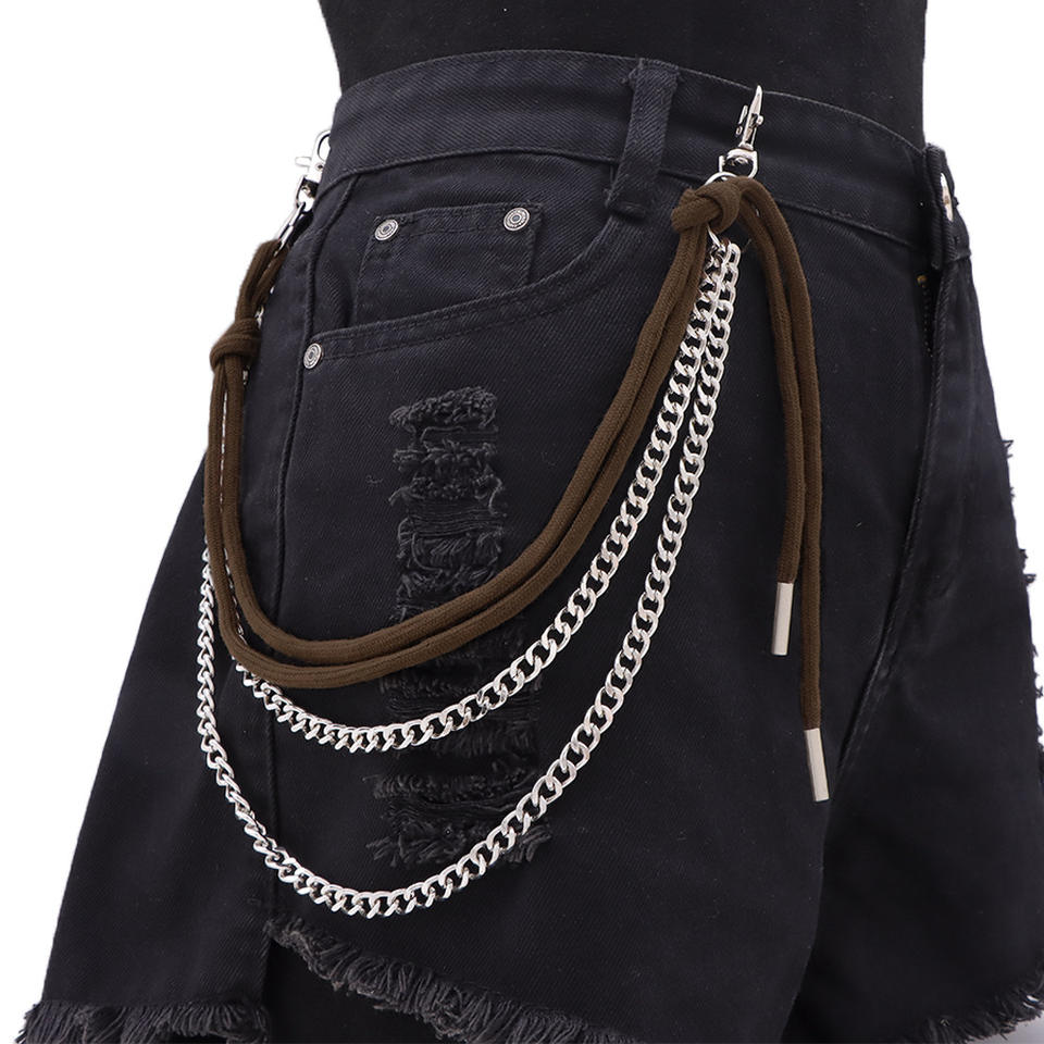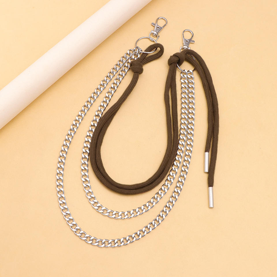 Cadena de cintura metálica de varias capas a la moda con lazos de cuerda marrón para accesorios de moda hip hop de mezclilla para adultos