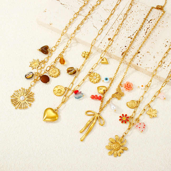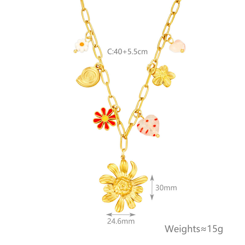 Collar de Moda con Múltiples Piezas en Forma de Corazón, Acero Inoxidable con Flor de Sol y Caracol en Forma de Corazón, Joyería Chapada en Oro de 18K