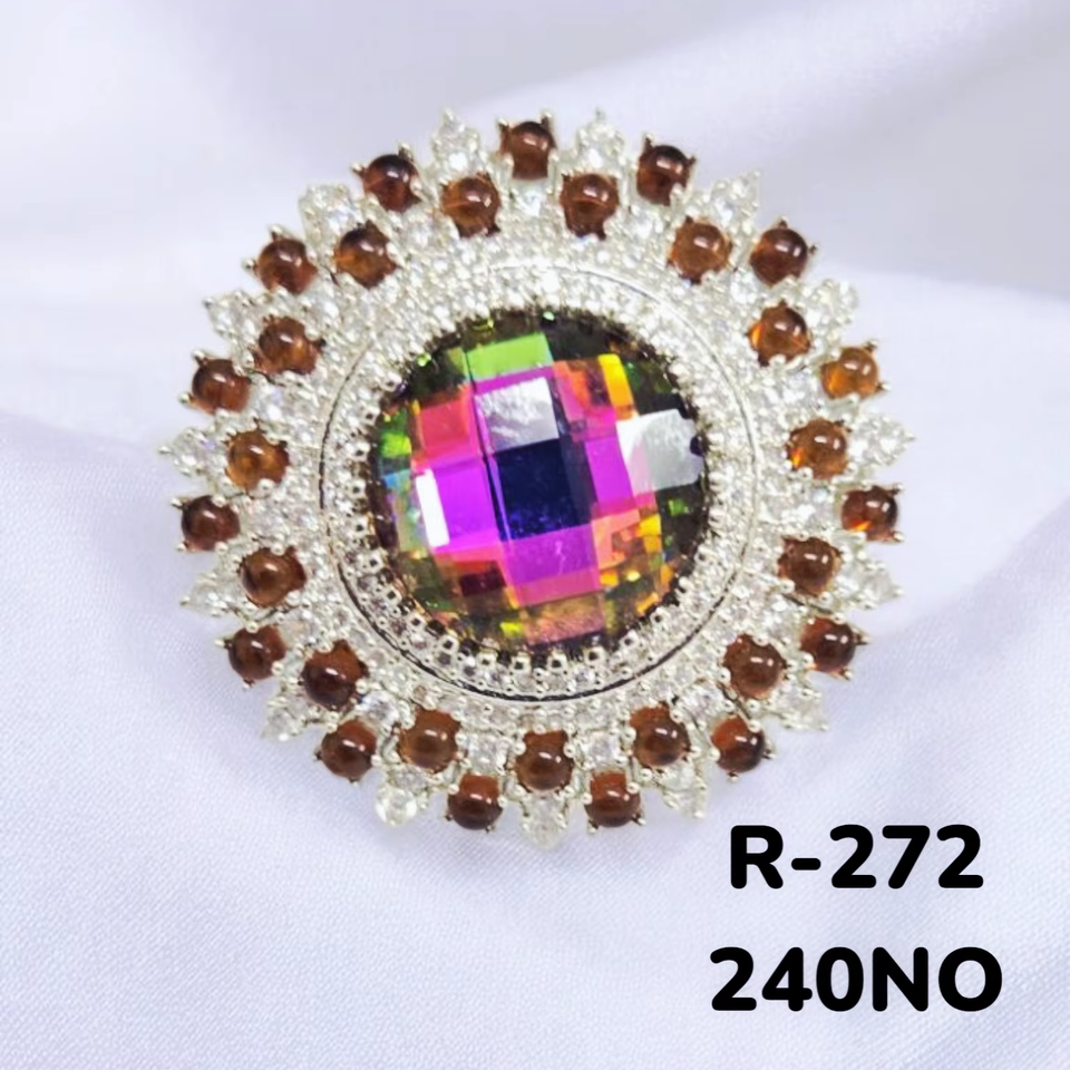 Anillo de piedra redonda facetada multicolor de moda con doble halo de CZ y gemas marrones Material de latón