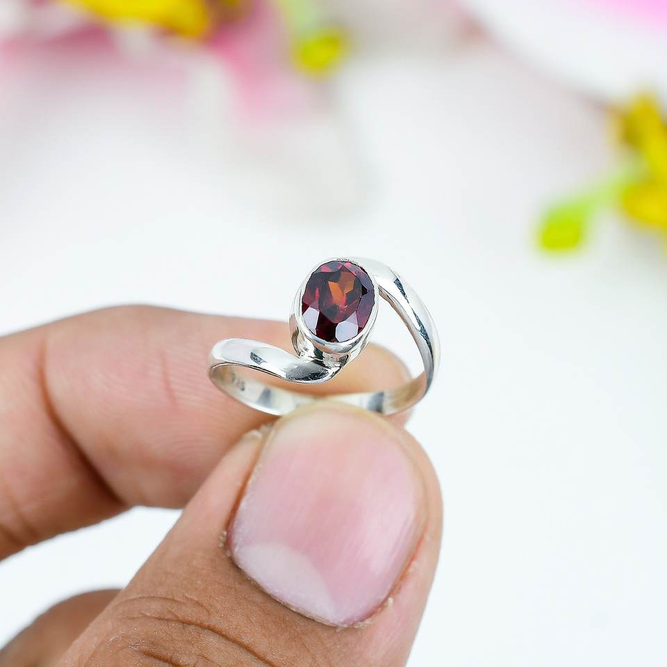 Anillo solitario de granate rojo Natural de moda Plata de Ley 925 con estilo Vintage Unisex para bodas o fiestas Joyería al por mayor