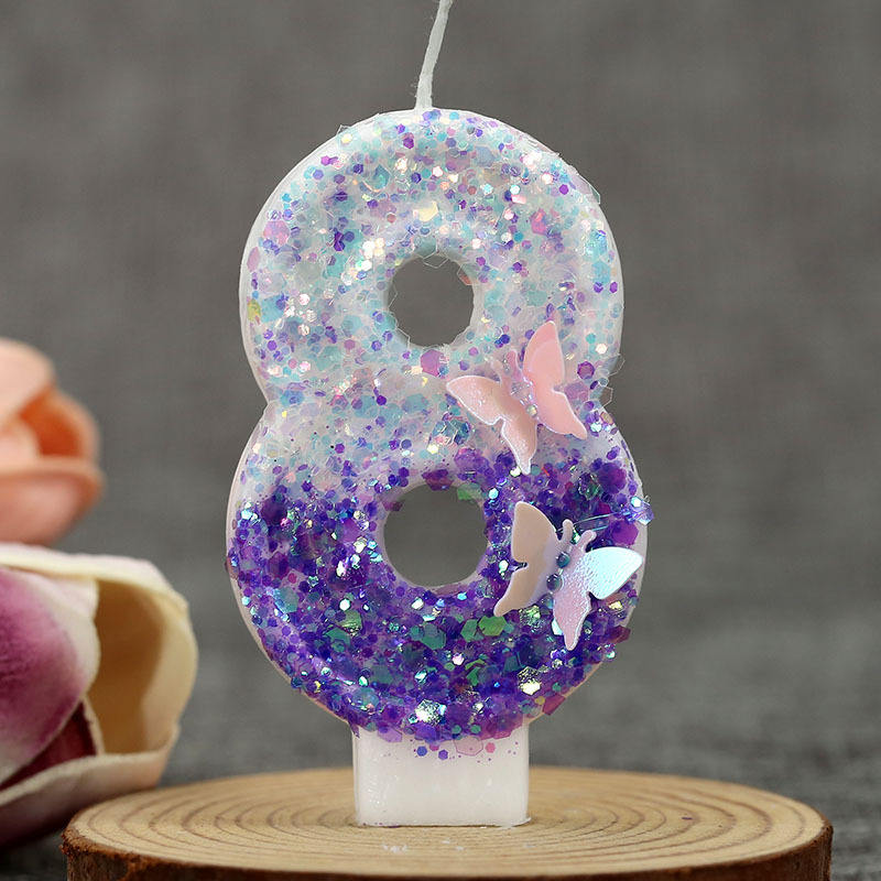 Vela de cumpleaños con número de parafina de mariposa púrpura de moda hecha a mano para decoración de pasteles de fiesta directo de fábrica al por mayor