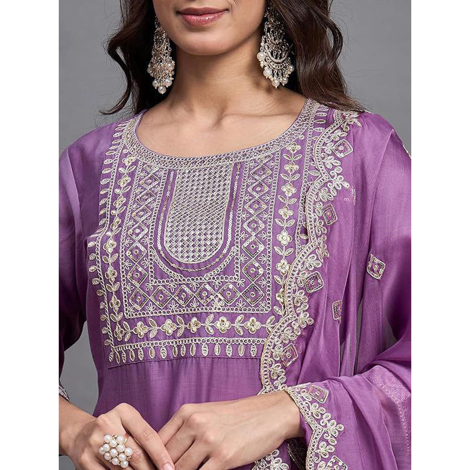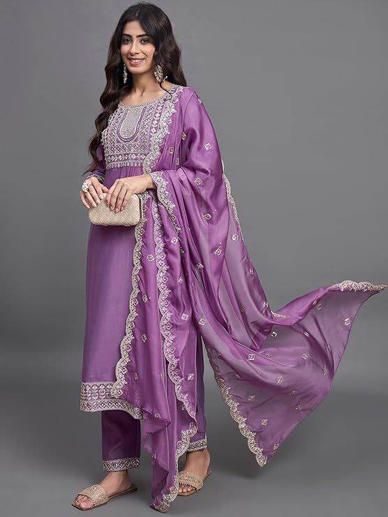 Conjunto de Kurta de seda púrpura de moda para mujer con trabajo de espejo Dupatta | Conjunto de traje étnico para fiesta, boda o eventos festivos