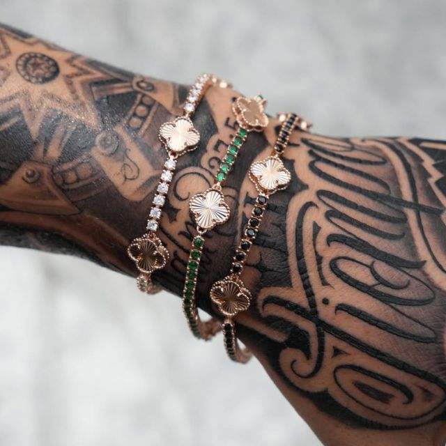 Pulsera de tenis de plata 925 con moissanita brillante y diamantes engastados en oro rosa, estilo trébol, para hombre, joyería de hip hop de rapero a la moda, para boda
