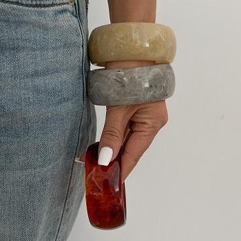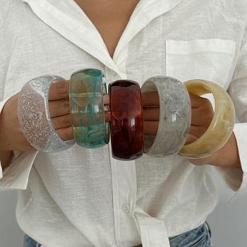 Brazalete de resina de moda con piedras incrustadas de colores Pulsera elástica de resina ligera con proveedores de diseños de cuentas únicos