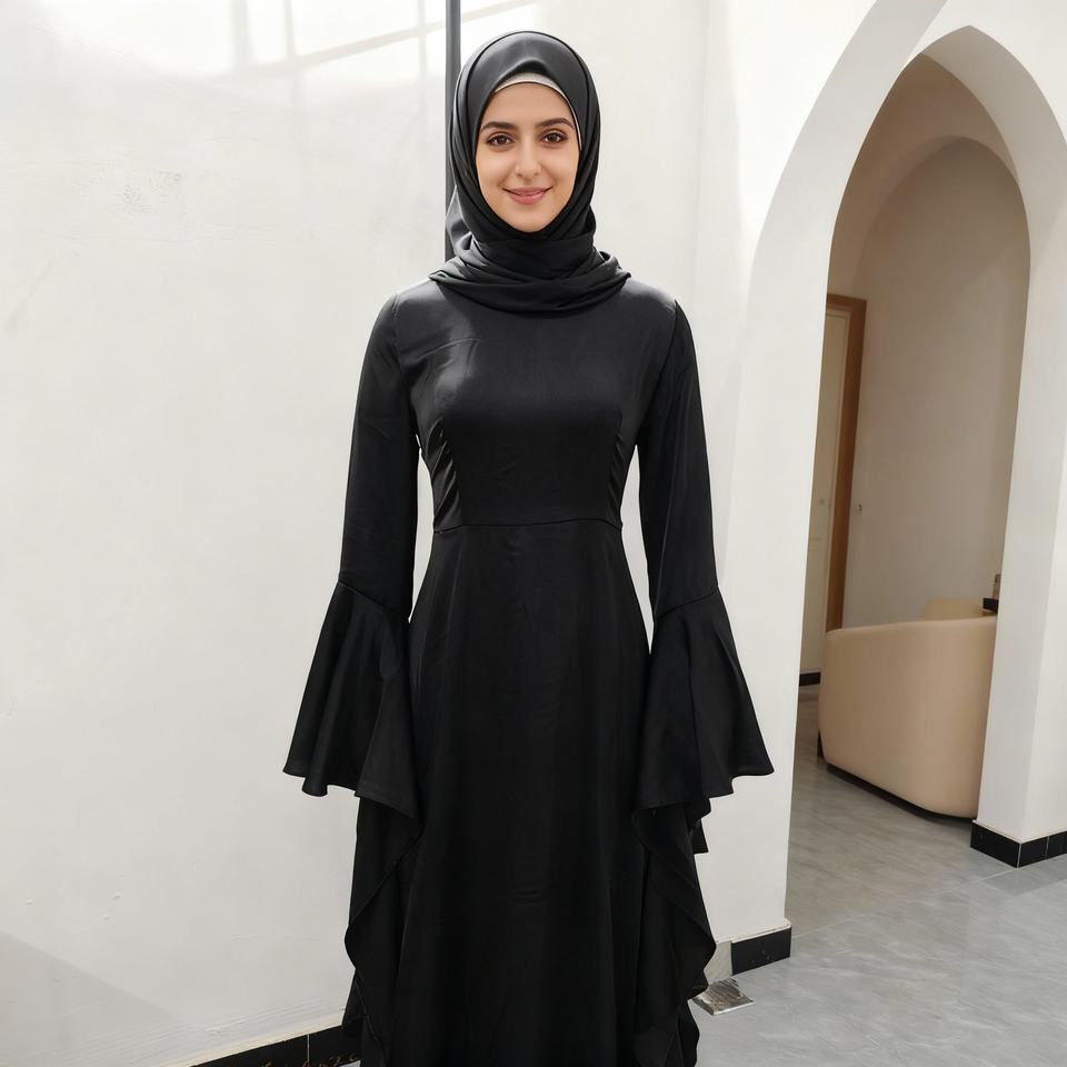 Abaya Moderna Informal de Tela de Algodón de Alta Calidad con Borde con Volantes para Mujeres Musulmanas, Uso Diario