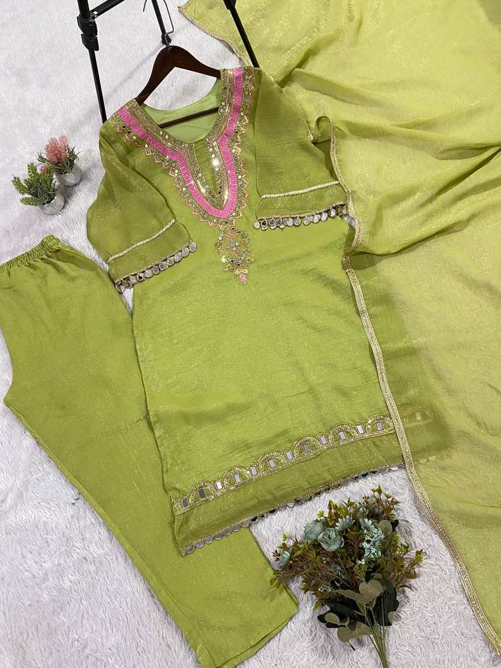 Conjunto de Kurta con Bordado de Lentejuelas a la Moda y Trabajo de Espejos Reales – Atuendo Étnico para Fiestas