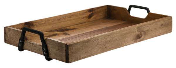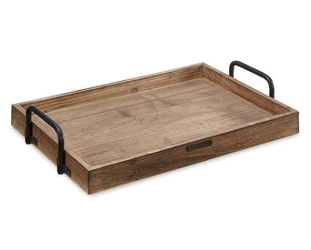 Bandeja para servir de moda, mango redondo de Metal, desayuno de madera para bandeja de fruta seca, bandeja rectangular grande de madera para servir alimentos con asas