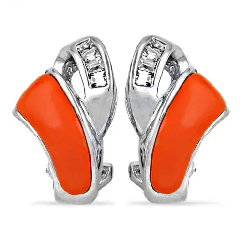 Pendientes de Aro y Tipo Broche de Plata con Esmalte Naranja y Detalles de Piedras Preciosas, con Perla como Piedra Principal, Ideales para Fiestas