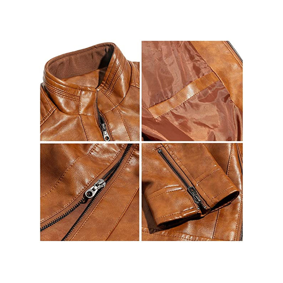 Moda primavera otoño nuevos hombres chaqueta de cuero de piel de vaca recubierta cuello alto Vintage de talla grande bolsillos delanteros