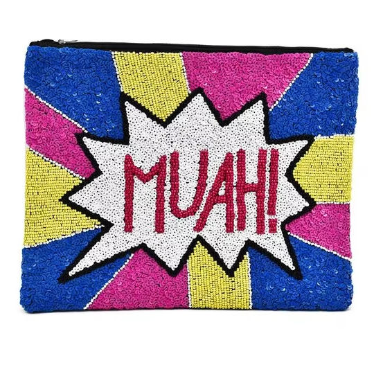 Declaración de moda hecha a mano MUAH Multicolor bordado con cuentas Mini bolso con cremallera hermosa elegante Top de moda de la India
