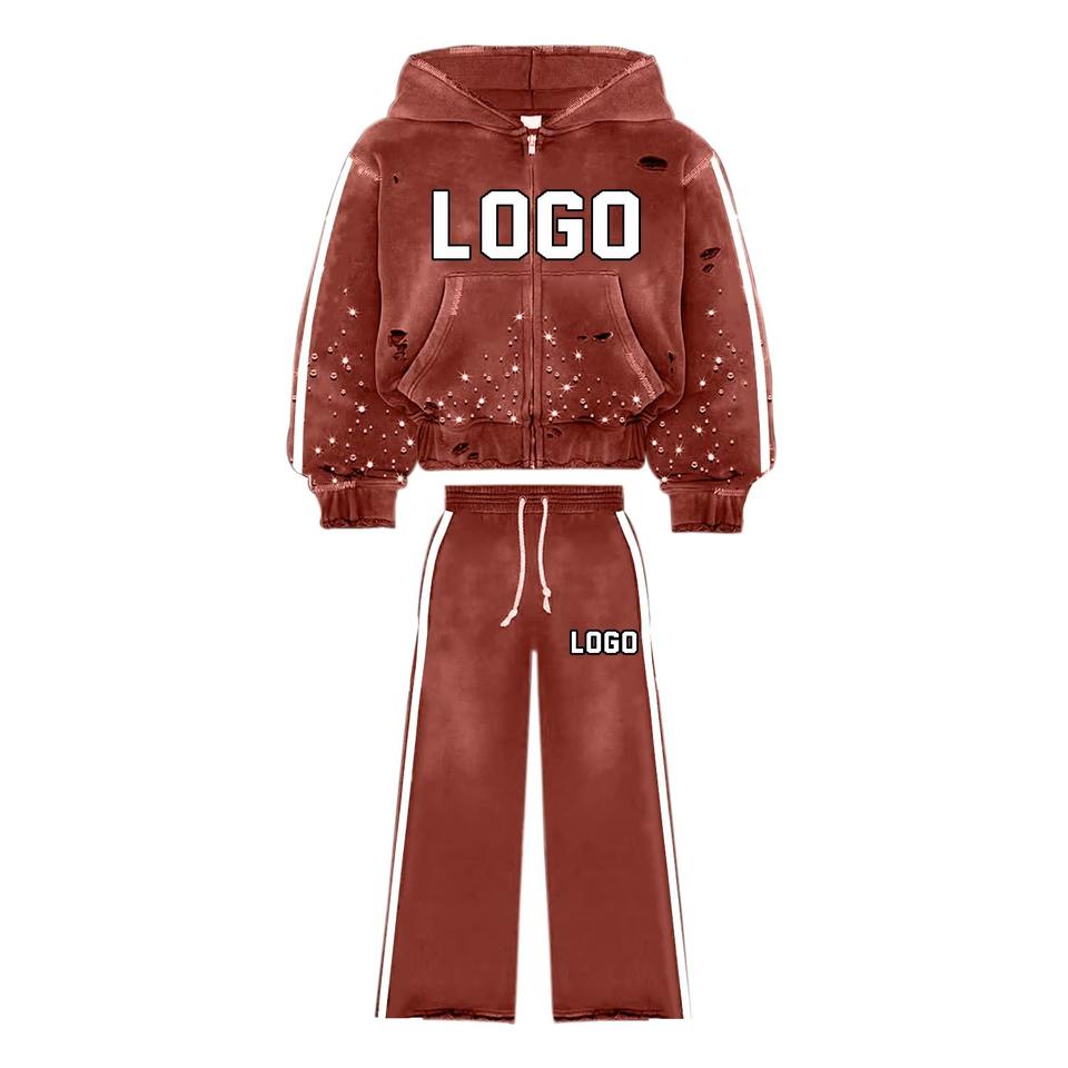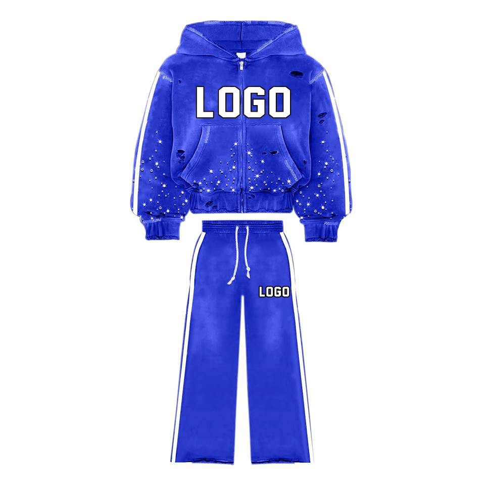 Product name:Customized Men Distressed Rhinestone Tracksuits