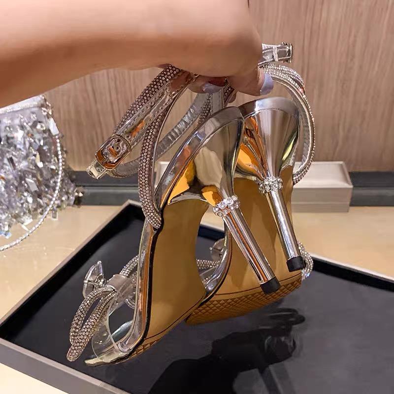 Modernas Sandalias de Tacón Alto Plateadas con Punta Cuadrada para Mujer, con Tiras Cruzadas en el Tobillo, Lazo Elegante y Detalles Brillantes
