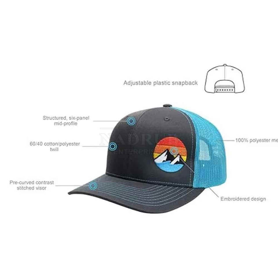 Sombrero de camionero de moda con panel frontal bordado y parte trasera de malla Sombrero de camionero de estilo vintage con tela suave