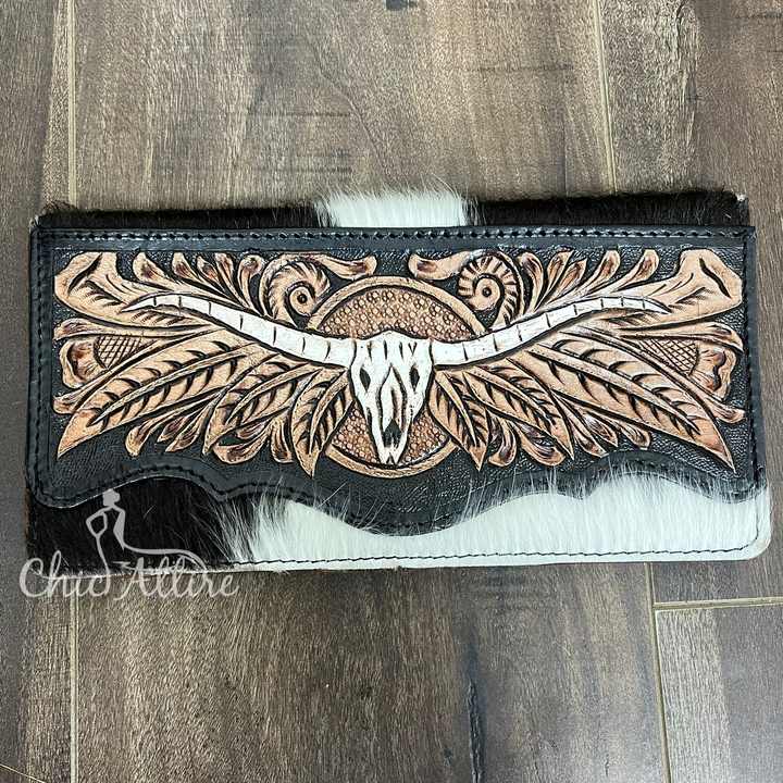 Product name:Hand Tooled Cowhide Leather Long Bifold Wallet