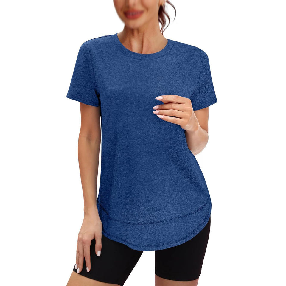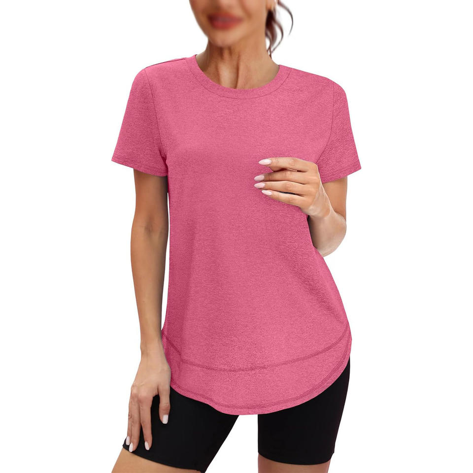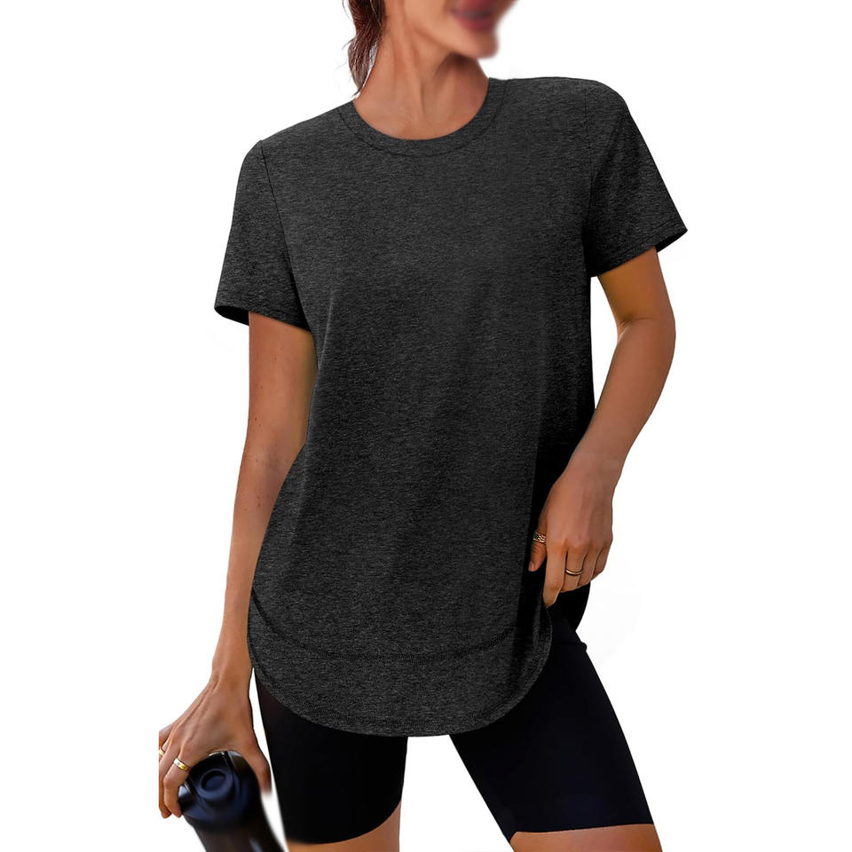Camiseta deportiva de moda para Mujer | Top de entrenamiento de manga corta transpirable de Color sólido de algodón 100% ecológico para Primavera/Verano informal