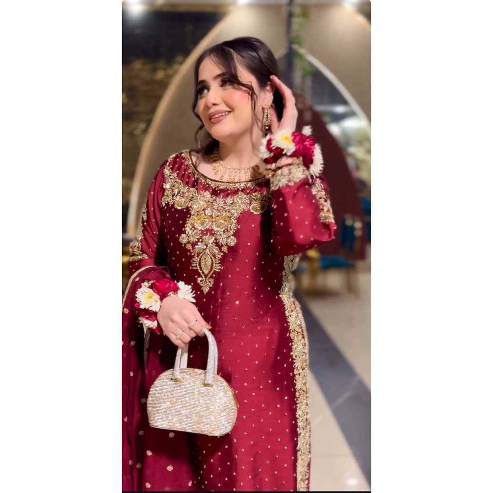 Conjunto de Dupatta y parte superior inferior de mujer de moda con trabajo de secuencia de bordado pesado
