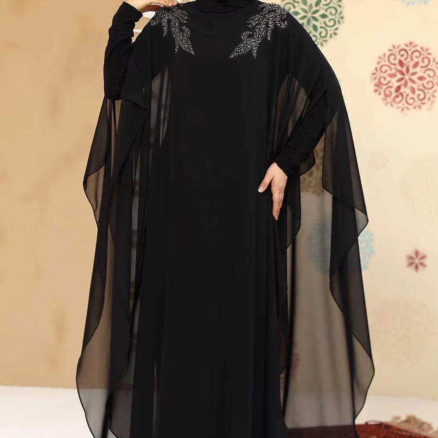 Abaya Moderna con Bordado Frontal para Mujer, Tela Suave, Ligera, Transpirable, Estilo Casual, Larga hasta el Suelo, Mangas Largas para Uso Diario