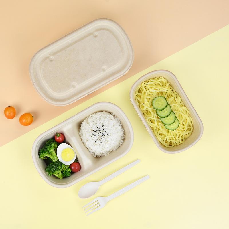 Trendz personalizado desechable 2 compartimentos bagazo de caña de azúcar contenedor de comida rápida biodegradable para llevar fiambrera para plato de cena