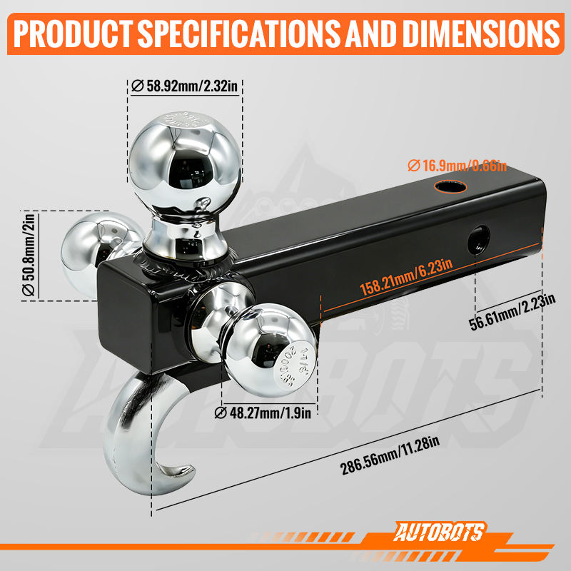 Enganche de Remolque de Tres Bolas con Gancho y Pasador, Tamaño de la Bola 1-7/8\", Enganche de Remolque de 2\" y 2-5/16\", Compatible con Receptor de 2 Pulgadas