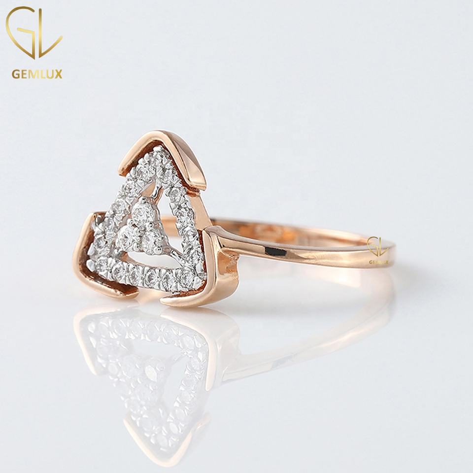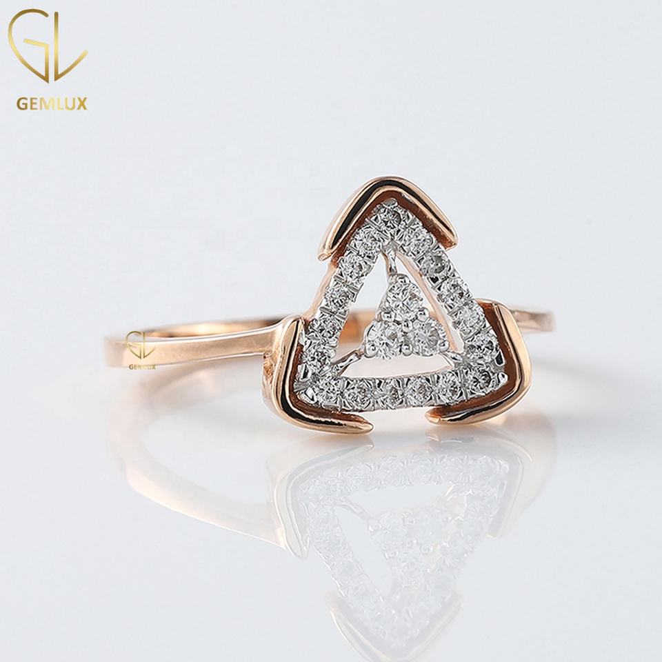 Anillo de Compromiso con Diamante Moissanite de Corte Redondo en Forma de Triángulo | Anillo Solitario | Joyería de Moissanita de Alta Calidad
