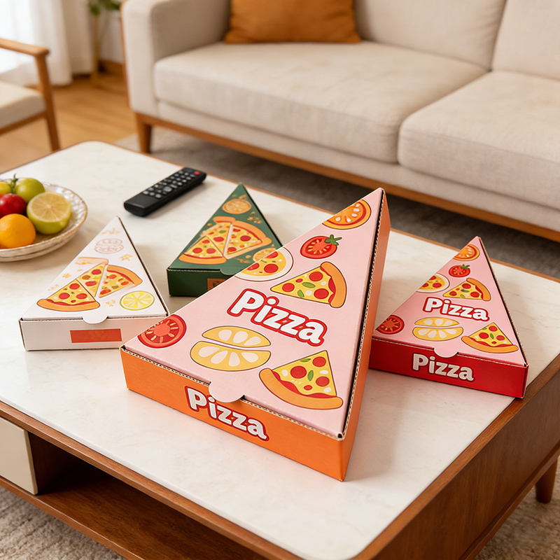 Cajas de Pizza Triangulares Ecológicas de Materiales Reciclados, Resistentes al Agua y al Aceite, Tamaños y Diseños Personalizados para Entrega de Comida Rápida