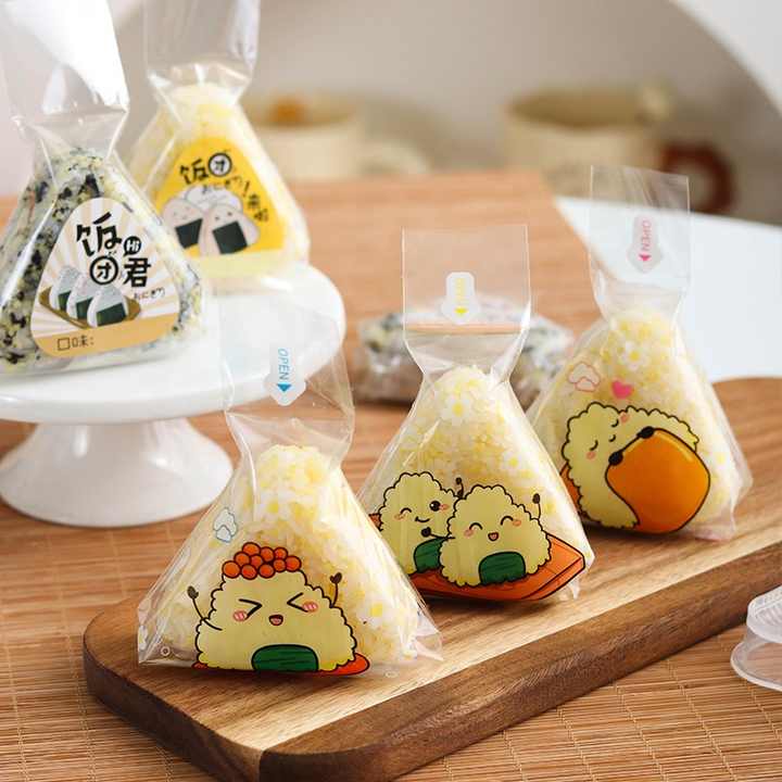 Bolsas triangulares de embalaje de rollos de arroz Bolsa de microondas de grado alimenticio para sushi con impresión encantadora