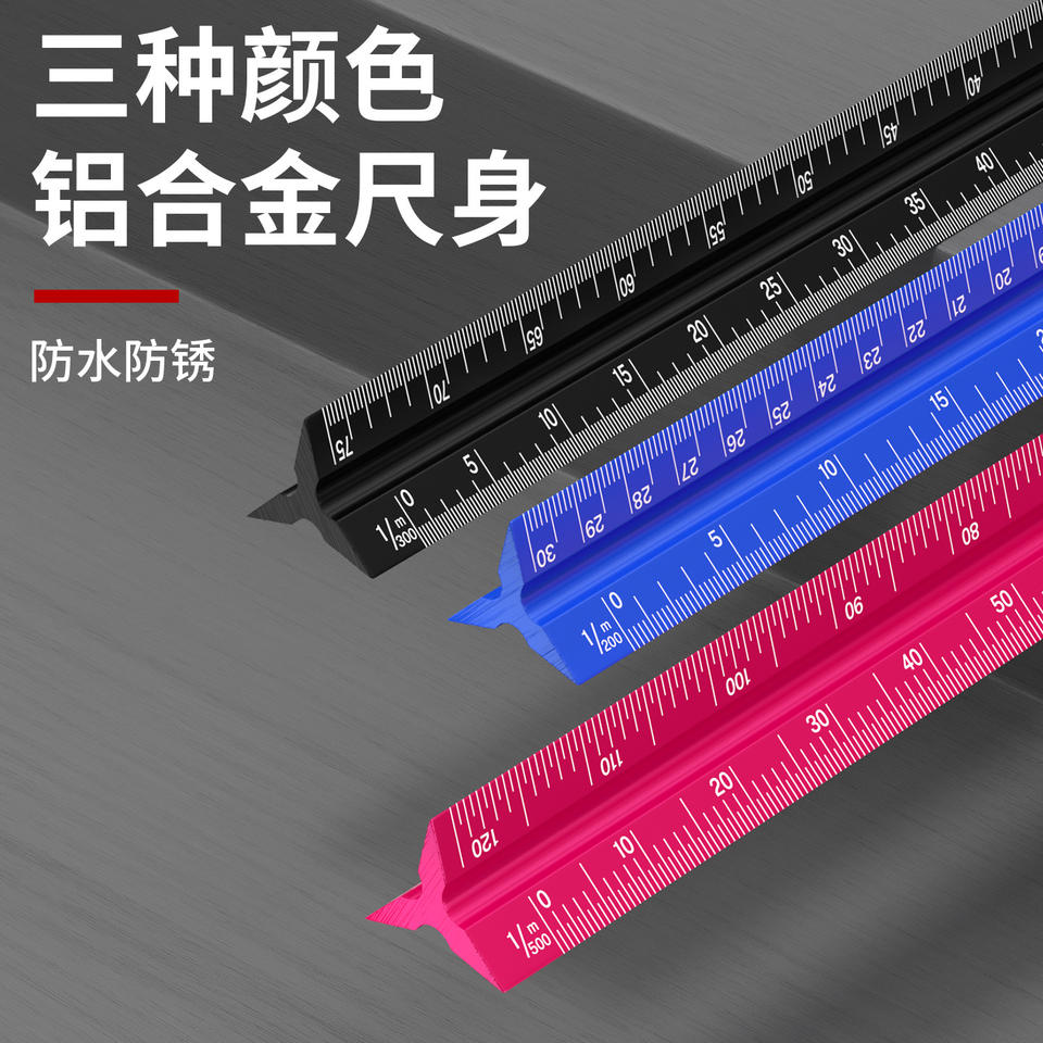 Triangular Ruler Aluminum Alloy 15 Cm Centimeter Inch Scale Drawing Drafting Measuring Tool Red Blue Black Color