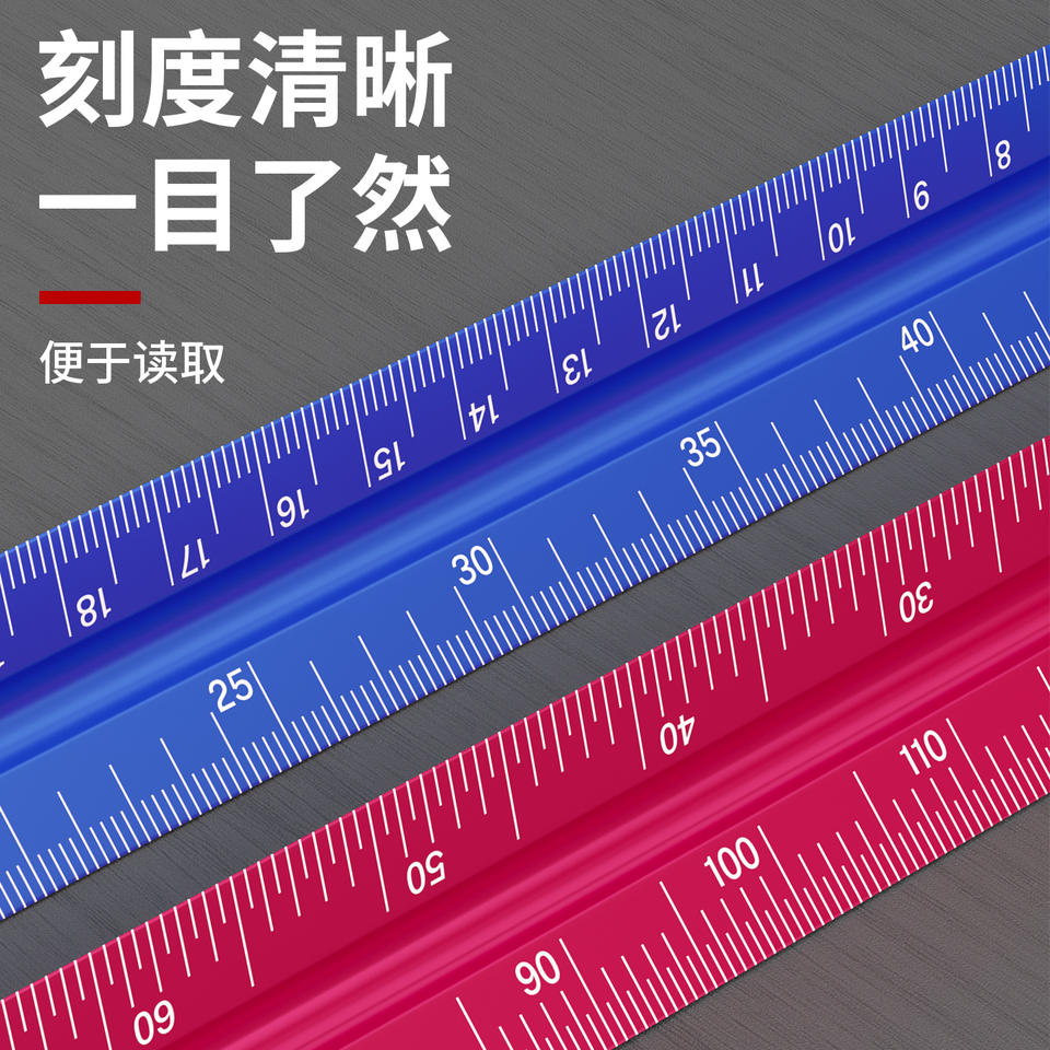 Triangular Ruler Aluminum Alloy 30cm Centimeter Inch Scale Drawing Drafting Measuring Tool Red Blue Black