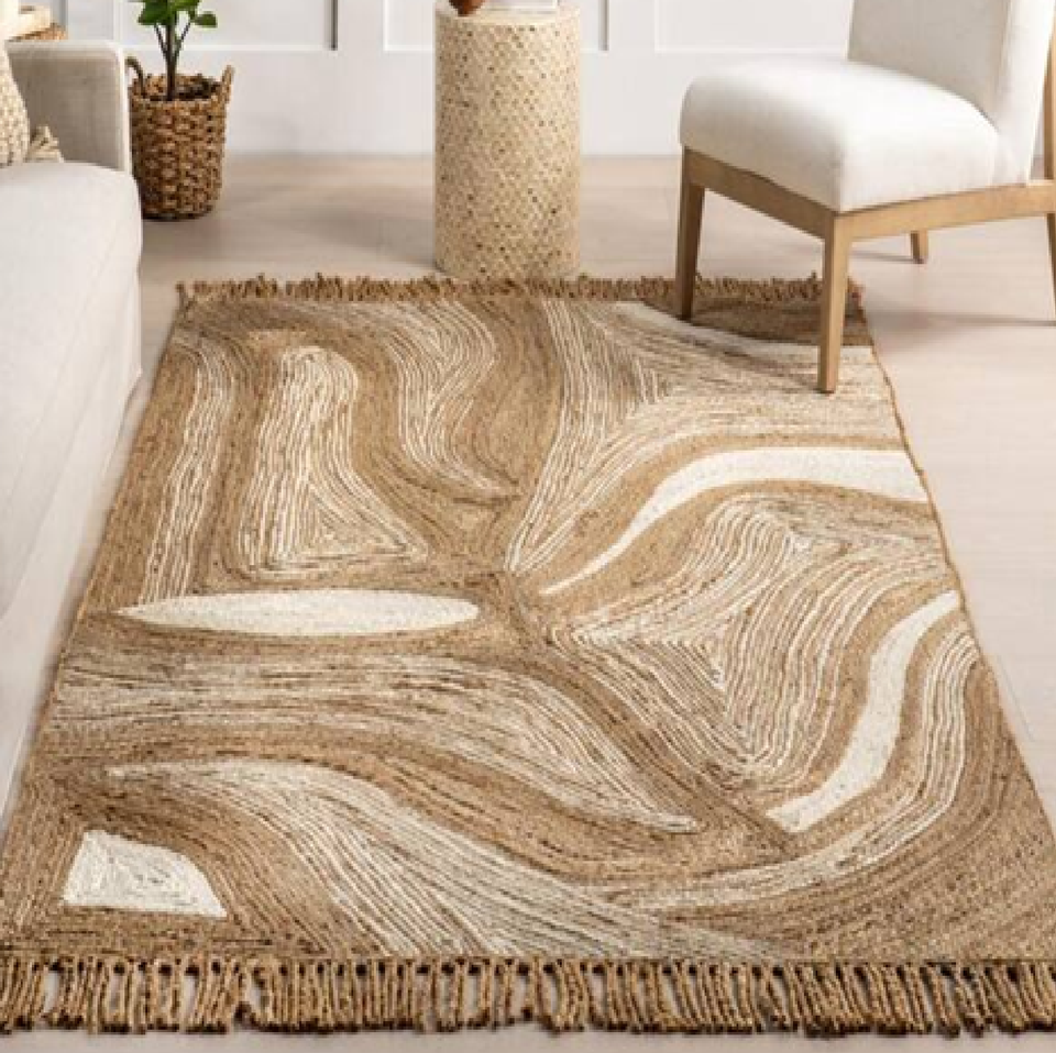 Alfombra de yute de diseño tribal con motivos geométricos y extremos con flecos para sala de estar, dormitorio, pasillo, Oficina de hotel a precios al por mayor