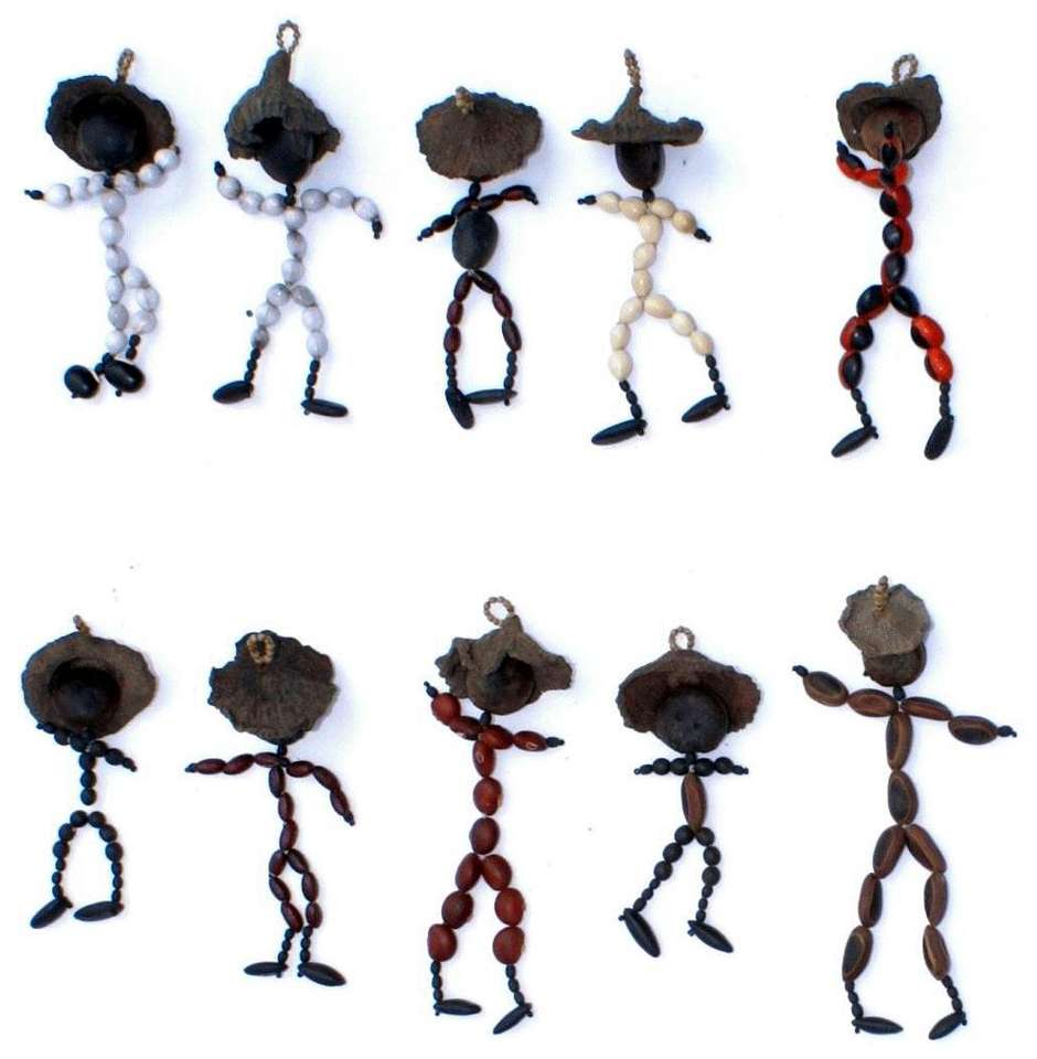 Muñecas Tribales de Semillas Naturales de la Selva Tropical de Ecuador por la Cultura de la Tribu Shuar, Arte Popular Étnico, Regalo Primitivo Ecuatoriano, Decoración del Hogar