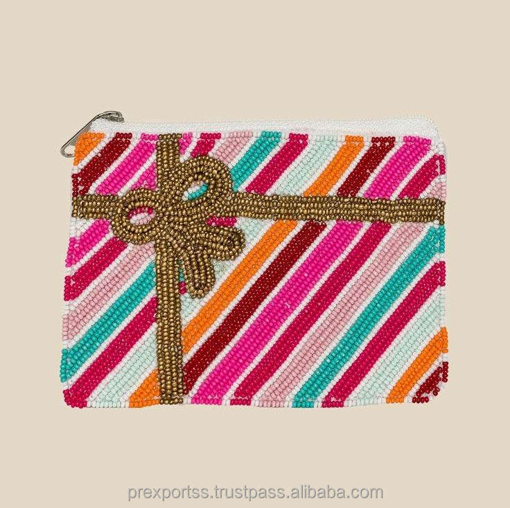 Monedero con Cremallera Bordado a Mano con Diseño Tribal y Geométrico, Monedero Étnico Personalizado, Monedero Pequeño para Monedas, Gran Capacidad, Ecológico