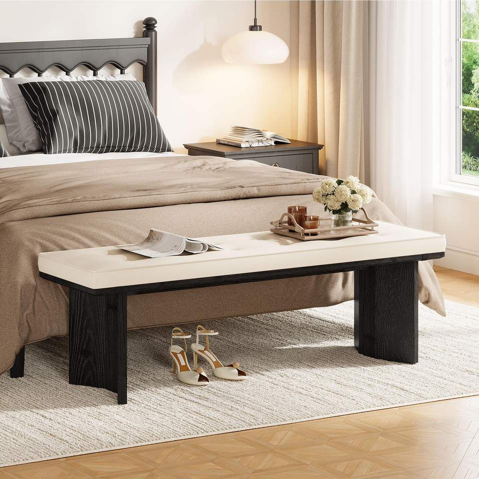Banco de pie de cama Tribesigns de 55 pulgadas de madera maciza con cojín extraíble para sentarse en el dormitorio principal