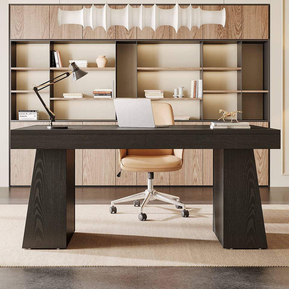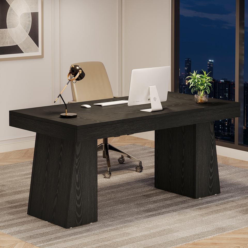 Tribesigns Escritorio ejecutivo de 55 pulgadas, escritorio de oficina en casa moderno de mediados de siglo con base trapezoidal doble, escritorio de estación de trabajo de negocios