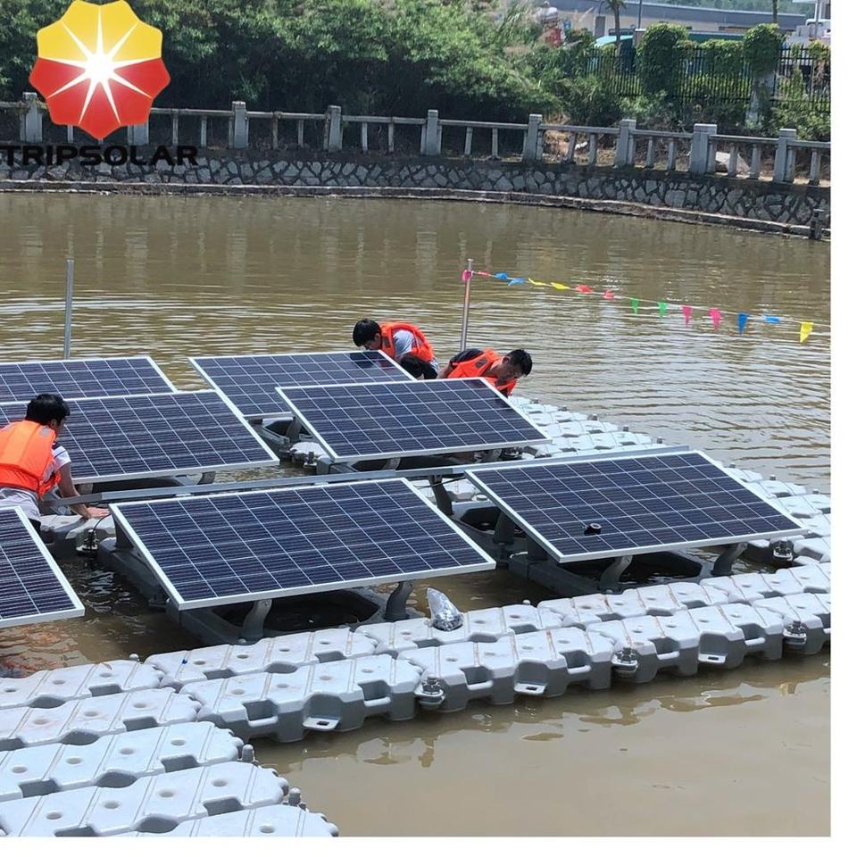 Estructura de Montaje Flotante para Paneles Solares Trip Solar HDPE con Paneles de Silicio Cristalino, Inclinación de 15°, Color Gris, Garantía de 10 Años