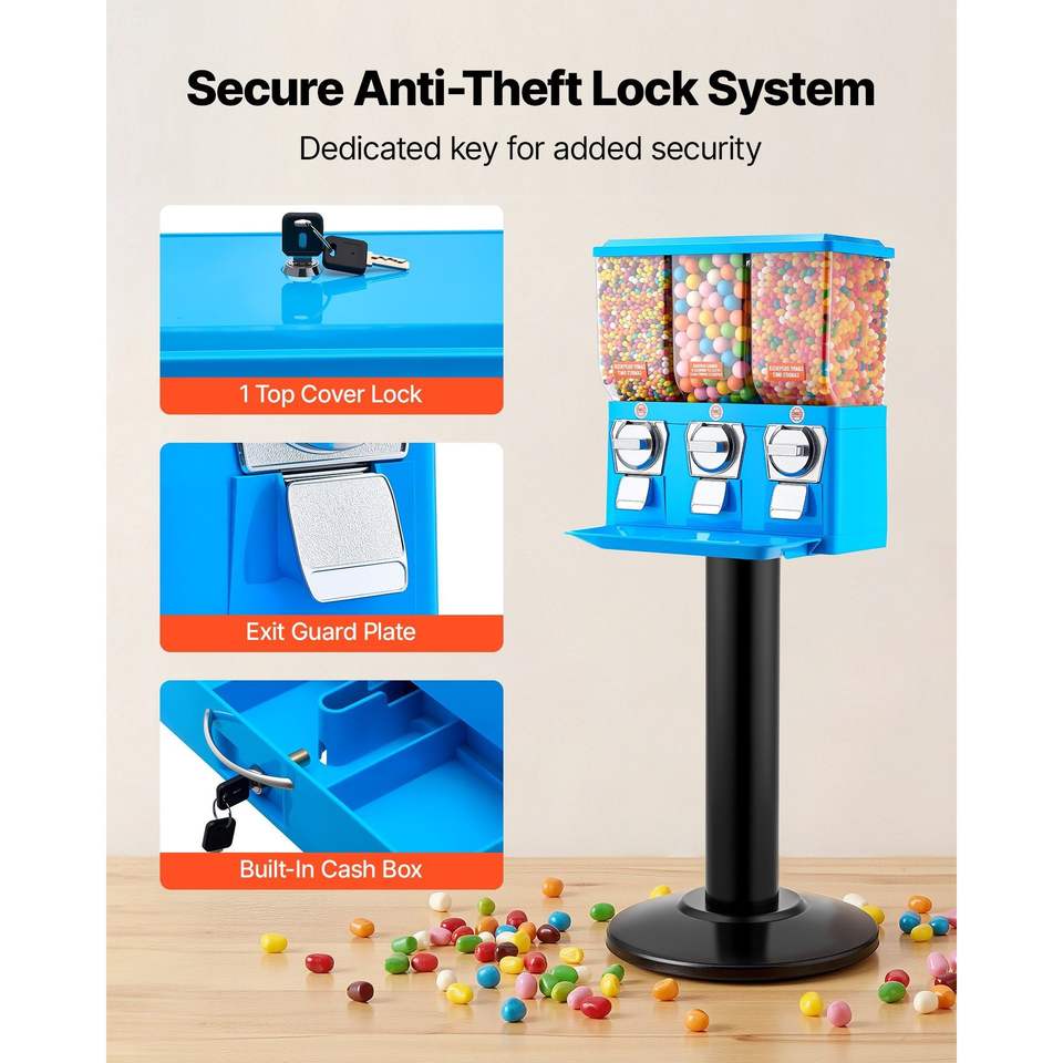 Máquina Expendedora de Dulces de Triple Compartimento con Soporte, Dispensador de Chicles Integrado para Venta de Dulces