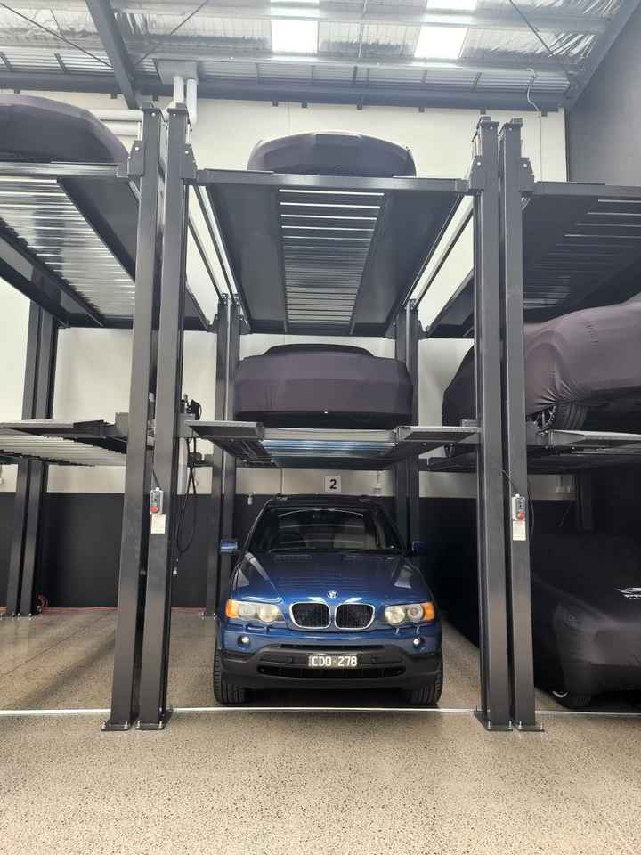 Elevador de Estacionamiento de Autos de 4 Postes y 3 Niveles Hidráulico Triple Fácil de Usar con Columna Compartida Modelo QJY-P3 Capacidad de Carga de 2500 kg