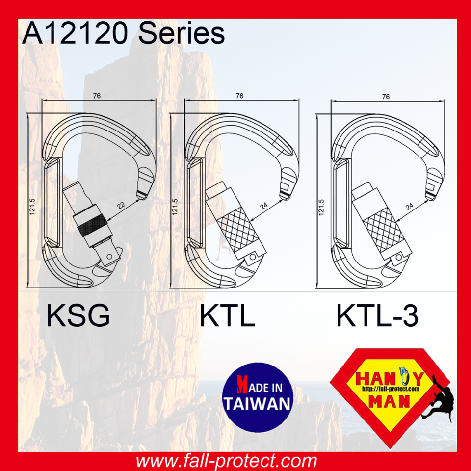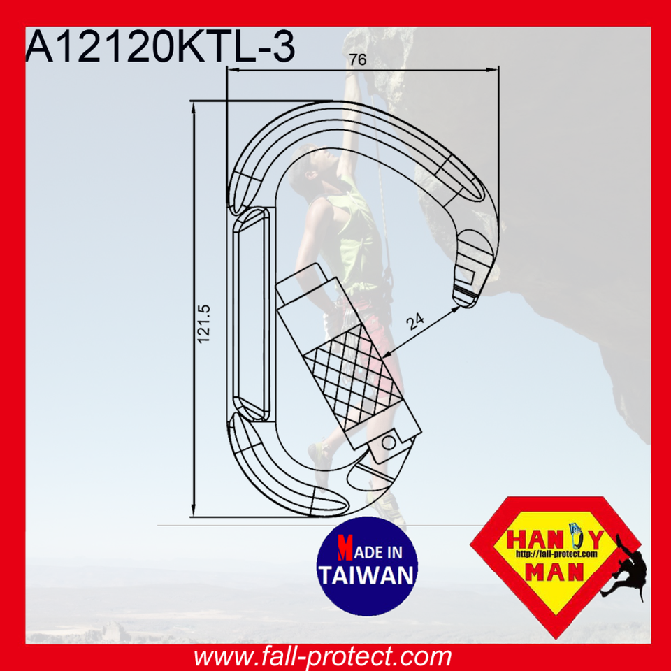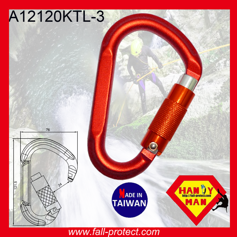 Mosquetón de aluminio Triple Lock fabricado en Taiwán para deportes extremos 25KN