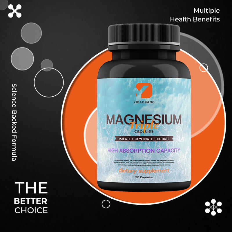 Cápsulas de Complejo Triple de Magnesio con Ácido Glicínico, Malico y Cítrico, Favorece la Relajación y Mejora el Sueño en Adultos