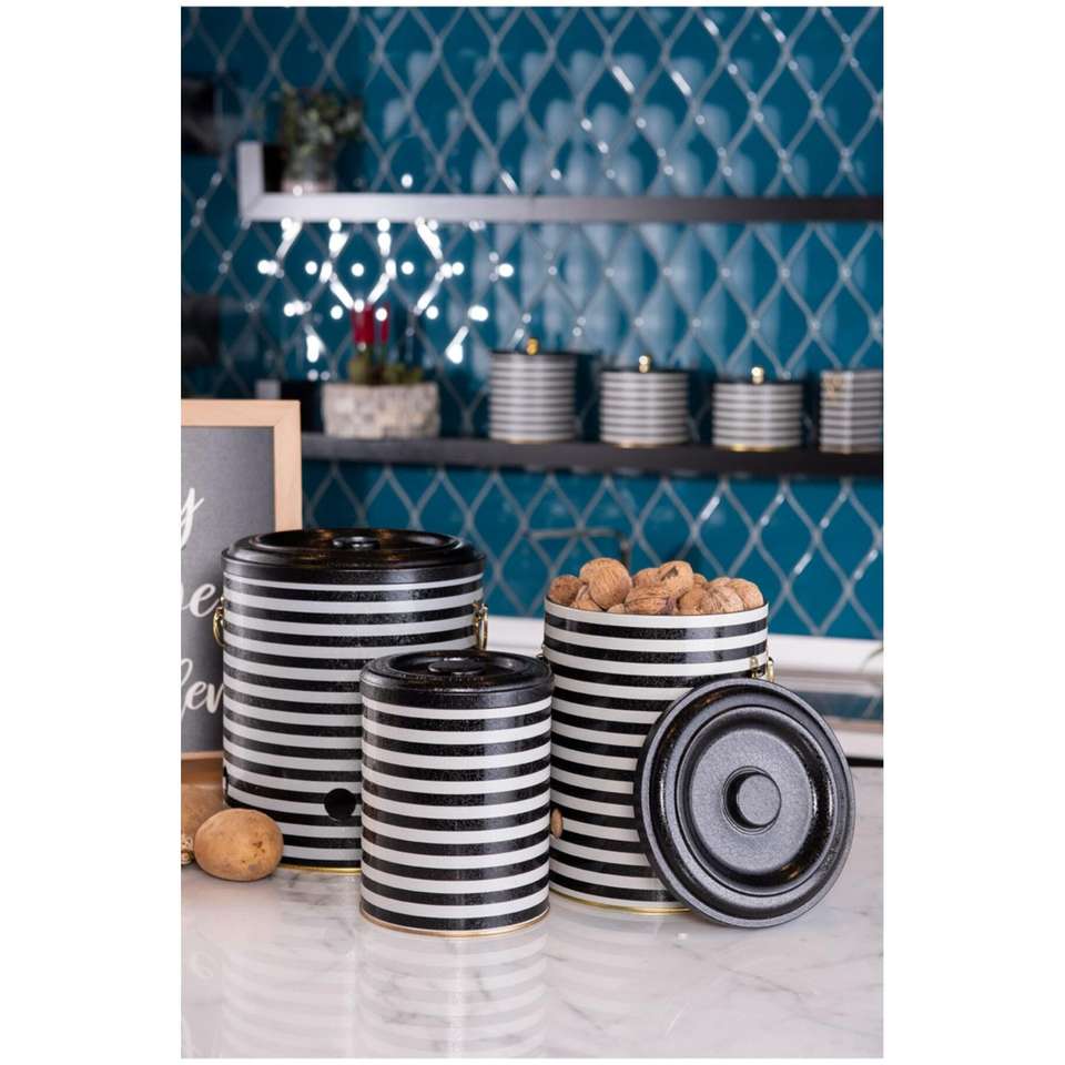 Juego de contenedores de metal triple para cebolla de patata y ajo (3 piezas) Diseño de línea de patrón de línea en blanco y negro