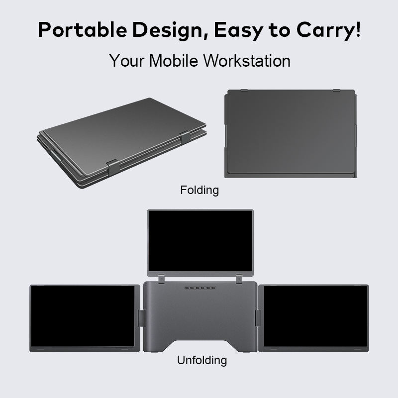 Monitor portátil triple de 15.6 pulgadas IPS FHD con soporte ajustable, extensor para laptop para configuración de trabajo empresarial