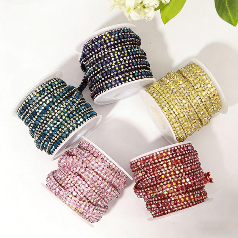 Cadena de Garra de Triple Hilera con Malla de Cristales de Imitación, Flexible y Resistente al Óxido, para Decoración DIY de Zapatos, Bolsos, Ropa, Accesorios y Manualidades