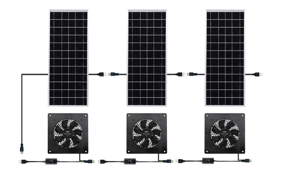 Ventilador de caja pequeña triple DC12V Sistema de ventilación con energía solar Ventilador de escape solar con termostato para cobertizo Ático Garaje Casa de mascotas