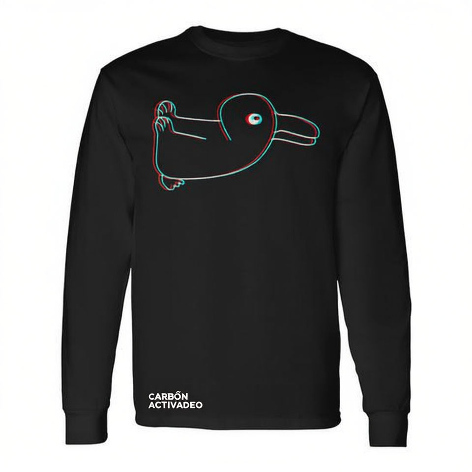 Camiseta de manga larga con ilusión óptica de Trippy Duck Rabbit, diseño novedoso, color negro