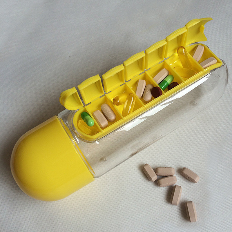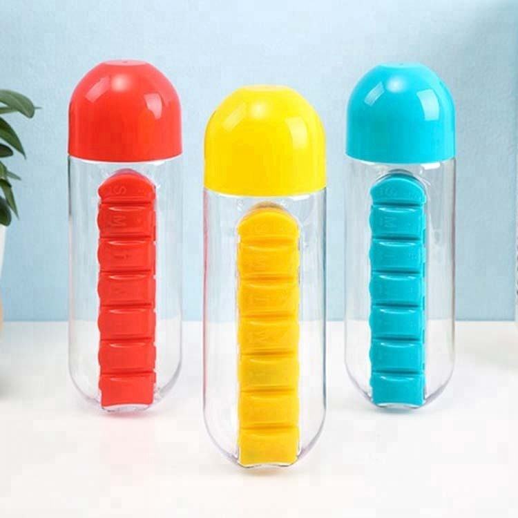 Nombre del producto:Botella de agua plástica de la caja de la píldora de la PC Tritan con la píldora diaria incorporada